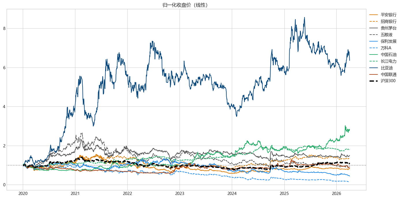 '银行': '#1f77b4', '白酒': '#ff7f0e', '房地产': '#2ca02c',
